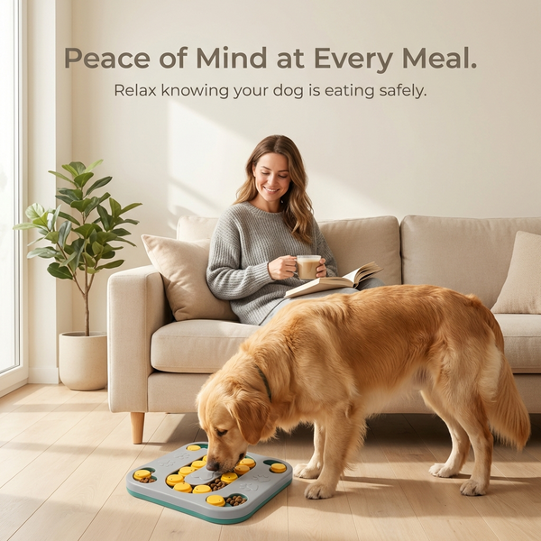 BrainBowl forces a slower, natural eating pace by turning kibble into a puzzle. Slower meals reduce choking risk, lower bloating chance, and help your dog feel satisfied longer after each meal.