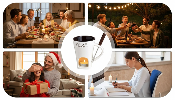 Simply use a tea light candle to gently warm and melt your ingredients, ensuring a delightful fondue experience anywhere.